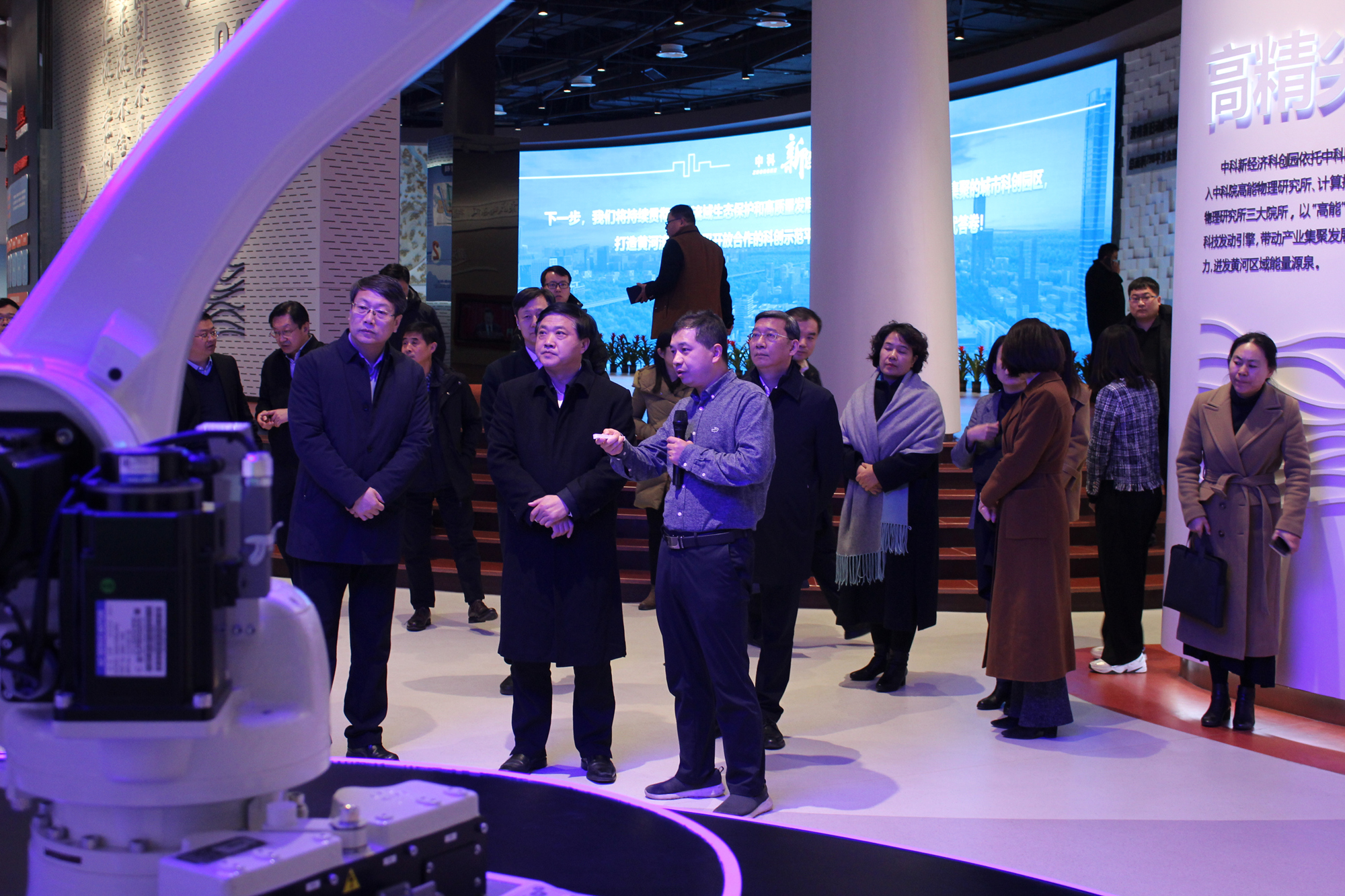 在中科新经济科创园城市展厅,调研组详细了解了3家落地院所的科技研发和成果转移转化情况,听取了科研人员关于国家及省市级重大科研工程项目进展汇报。