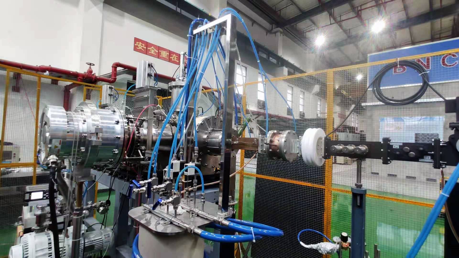 在ECR质子源的研制阶段,受新冠疫情影响,相关部件不能按时运达,BNCT团队克服困难、通力合作,确保其研制工作严格按时间表顺利推动。ECR质子源最大脉冲流强40mA,48小时稳定运行,无打火、无中断,可以任意占空比出束。研制成功的ECR质子源将安装于东莞市人民医院BNCT治疗中心大楼,与其他设备一起集成完整的BNCT装备,开展临床试验和医学研究工作。
