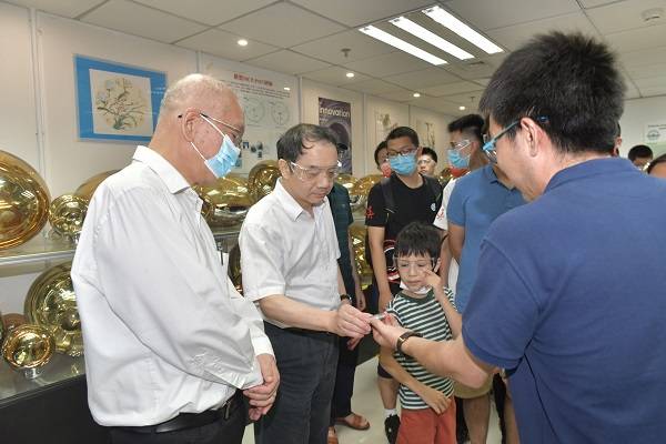 在光电倍增管实验室,王贻芳向求真师生介绍了光电倍增管的工作原理、当前的研究成果以及光电倍增管在冶金、电子、机械、化工、地质、医疗、核工业、天文和宇宙空间研究等领域的广泛应用。