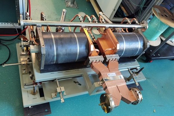 HEPS脉冲压缩器由加速器中心直线组负责研制,总数量为4台,其波导和谐振腔采用双孔耦合方法,降低了耦合孔的表面电磁场,提高了运行稳定性;谐振腔采用内水冷方式,提高了冷却效率、高功率运行时温度分布更均匀;谐振腔外面用铅皮包裹,有效的减少了辐射剂量;使用了六维可调的支架,减少了安装的难度。
