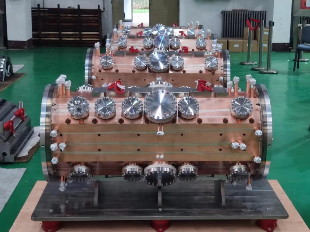 该RFQ腔体尺寸大、结构复杂,加工精度要求高,研制过程具有很大的挑战。高能锐新公司项目组与课题组联合进行技术攻关,开发了多项创新的技术工艺,并持续优化现有工艺流程。研制期间,公司项目组和课题组紧密配合,最大程度降低了疫情对进度的影响,最终保质保量完成了研制任务。