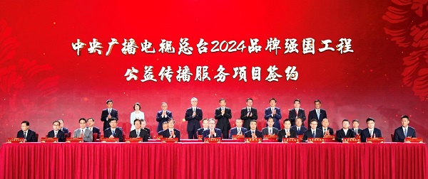 中宣部副部长、中央广播电视总台台长慎海雄,国家广播电视总局副局长杨国瑞等共同见证“品牌强国工程”公益传播服务项目签约。