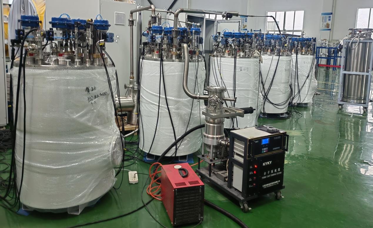液氮过冷器冷箱是同步辐射光源中的重要低温设备,可为低温波荡器和低温单色器提供稳定冷源,提高其关键性能,此前一直依赖进口。2016年,高能所低温组开始过冷器冷箱的研制工作,在2019年完成冷箱整机国产化,打破了整机只能进口的状态。随后,经过近三年的攻关,于2022年实现了冷箱关键硬件——低温循环泵的国产,并对低温阀门、流量计、液位计、低温接头等进行了国产替代。2023年2月,完成了过冷器冷箱的整体调试,整机和部件实现国产化。本次5台量产的测试达标,表明设备制作集成工艺稳定,标志着冷箱技术的成熟。