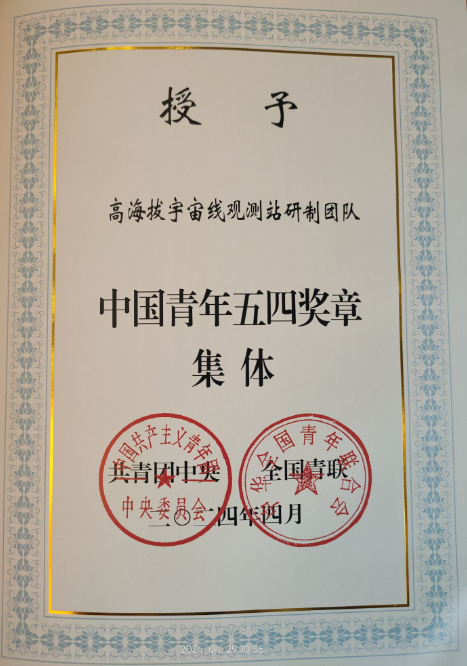 429日,第28届“中国青年五四奖章”评选结果揭晓,高海拔宇宙线观测站研制团队荣获“中国青年五四奖章集体”。