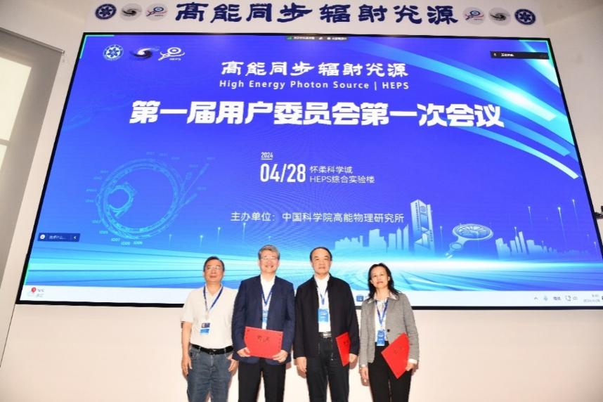 董宇辉为HEPS第一届用户委员会主任(姚建年院士)、副主任(丁洪院士,陈春英院士)颁发聘书