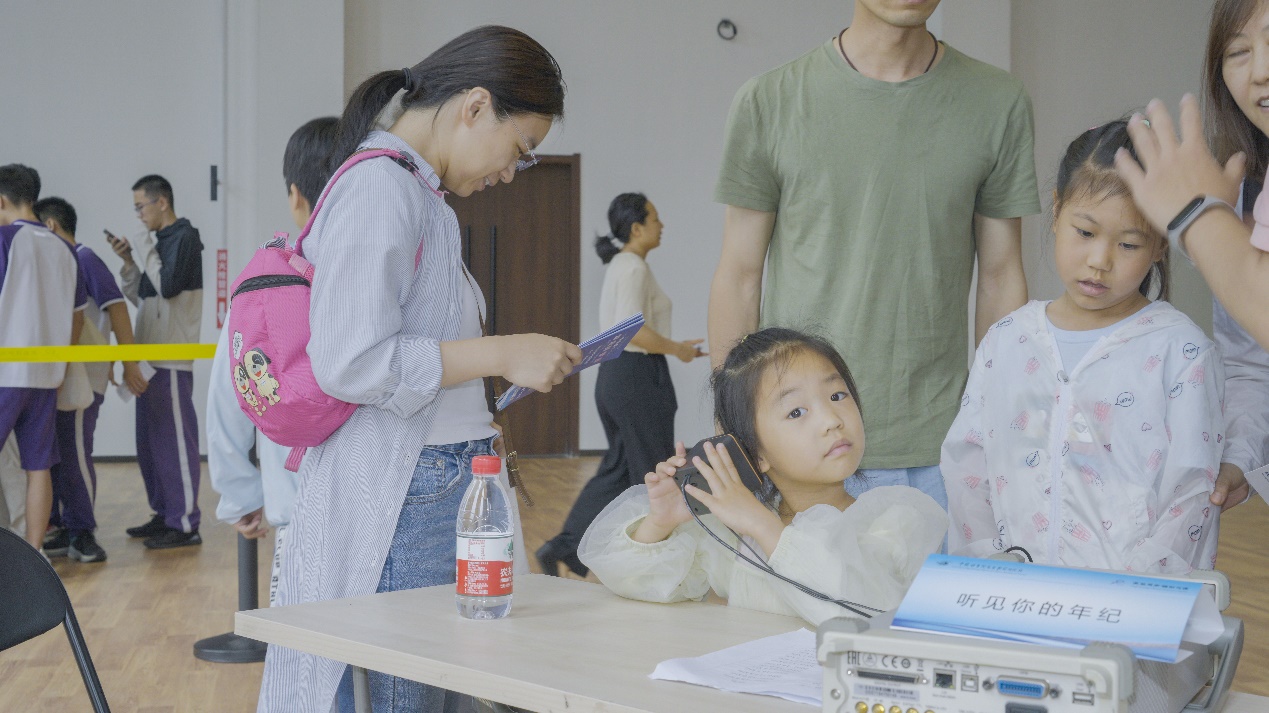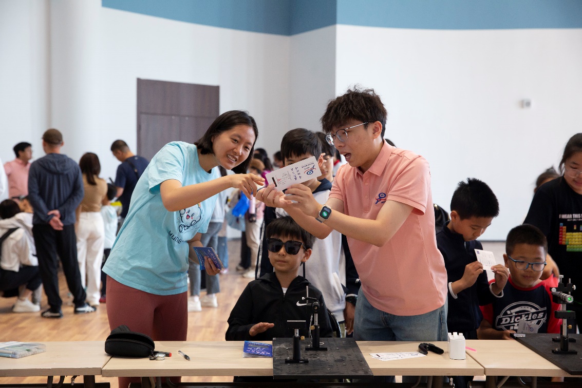 杨福桂副研究员和他小伙伴们,以光丈发,设计互动的小实验,请公众亲身参与到HEPS应用原理小实验,利用光的衍射测量头发丝的直径;另外,年轻的科研人和学生也利用实验室的设备,与公众互动,请公众了解HEPS,了解科学,了解书本里的公式如何转化为大国重器,揭开大国重器的神秘面纱。