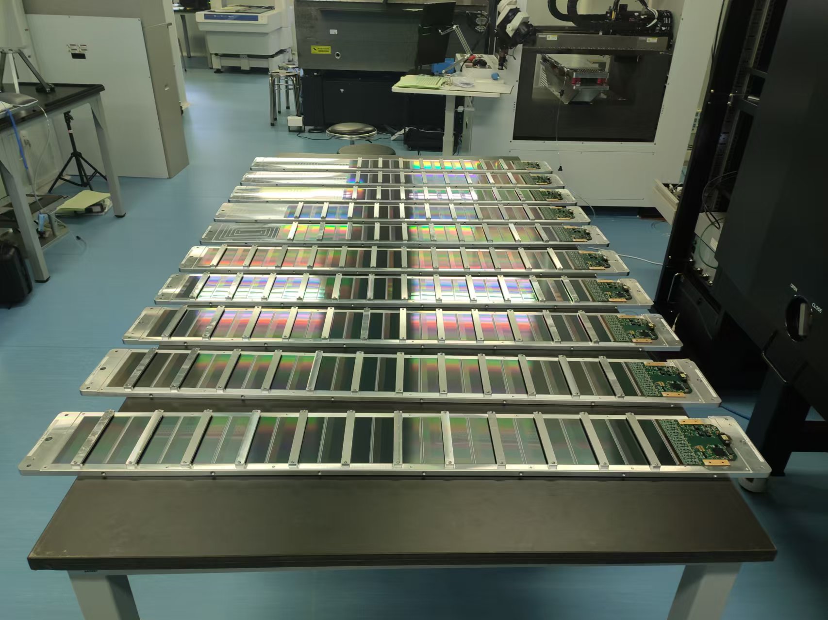 本次生产任务中一个重要的技术挑战是在超长模块上的贴装精度,高精度贴装工艺是最终探测器实现高空间分辨率的重要保障。项目团队经过精心的设计和研发,最终在长约1米的探测模块上实现3.4微米的贴装精度,超远此前国际同类探测器10-20微米的精度水平。此次生产任务同时也为高能所实验物理中心和粒子天体中心培养和锻炼出一支高素质、高效率的科研队伍。根据计划,AMS探测器升级模块将被运送至意大利和CERN进行进一步的组装。随后,探测器升级模块将搭乘龙飞船进入国际空间站,并安装在AMS实验探测器上。