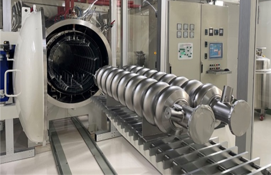 该团队提出了将中温退火技术应用于国内外使用最为广泛的1.3 GHz 9-cell超导腔的创新思想,并成功用于超导腔的具体研发中,最终1.3 GHz 9-cell和650 MHz两种超导腔在性能方面取得了重大突破和创新成果,超导腔品质因数测试结果处于国际领先,超导腔加速梯度测试结果达到国际一流水平,在国际上产生了重要影响。这项成果具有完全自主知识产权,使我国高性能超导腔技术跨入世界前列,而且已用于我国基于高品质因数超导腔的加速器建造,被我国的高重频自由电子激光装置和大型环形正负电子对撞机(CEPC)以及国外超导加速器设计方案所采用。