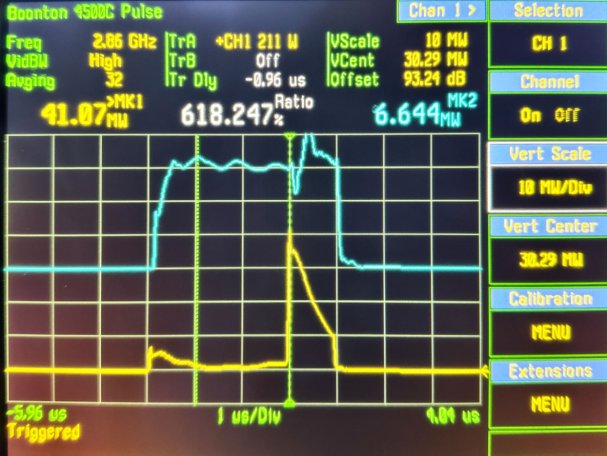 现场测量的脉冲压缩器输入(蓝色)与输出(黄色)波形