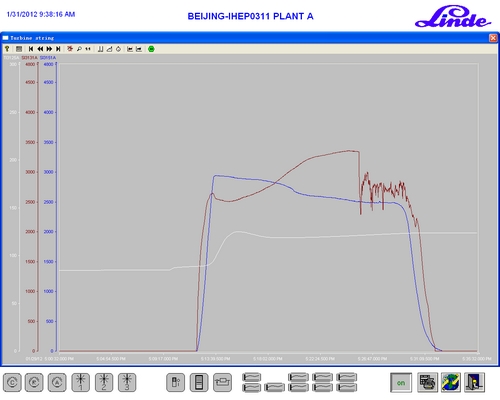 透平是制冷机最昂贵的核心部件,最高速度可达到5000转/秒。通常,透平更换和维护由制冷机厂家的专业工程师完成,低温系统从2005年制冷机开始运行以来未出现过类似故障,工作人员也没有更换透平的经验。由于停机时间的紧迫性,低温组的工作人员在所领导和加速器中心领导的充分信任和大力支持下,进行了详细的技术讨论和精心的准备,同时通过电话和email得到了制冷机厂商Linde公司的技术支持,于30日连夜完成了对透平的更换工作,31日凌晨4:10制冷机再次开机,更换后的透平启动后运行稳定,很快达到了额定转速并开始稳步降温。至此,透平更换成功,忙碌了一天一夜的抢修人员终于长舒了一口气。紧接着超导磁体设备开始降温,于2月1日凌晨4:50低温系统完成全部磁体降温。