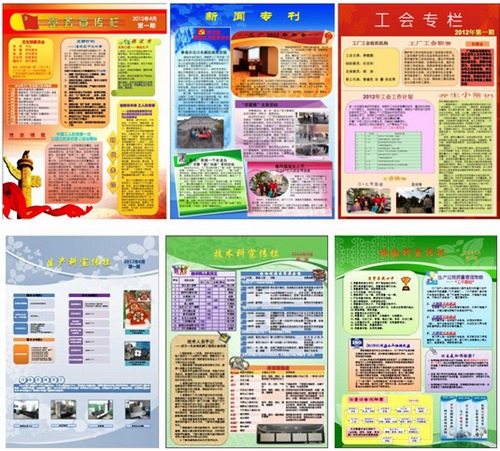 近期,工厂新更新了党支部、团支部、工会、生产科、技术科、检验科等部门的宣传栏,向职工宣传党的路线、方针、政策和各项规章制度、各类项目进展,增进了不同部门之间的交流。另外新增加了新闻专刊,刊登工厂的最新资讯信息和近期发生的重要事件。