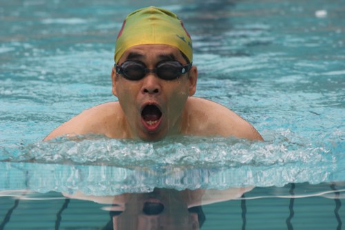 选手们在游泳池赛道上展开了激烈的竞争,大家都拿出各自的本领,奋力拼搏!值得庆贺的是,理论室赢得了开场的“首金”——黄超光获得50米自由泳男子丁组第一名!在接下来的比赛中,理论室的队员们再接再厉,陈莹获得50米自由泳男子丙组第四名,吕才典获得50米蛙泳男子丙组第三名、50米仰泳男子丙组第六名,黄超光获得50米蝶泳男子丁组第二名,王建雄获得100米自由泳男子丙组第四名、100米蛙泳男子丙组第四名,李明华获得100蛙泳男子甲组第四名!