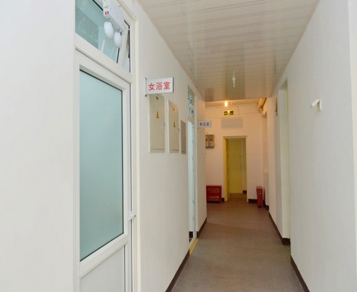 九号楼装修及浴室改建历时一个半月,装修部分包括对九号楼楼道及楼梯铺设地板块、楼道墙面及房顶粉涮及房间门粉刷等,共32小项;浴室改建工程内容:将原来每层厕所一个淋浴喷头(共计8个喷头)改为男、女两个独立浴室,每个浴室安装了7个喷头。