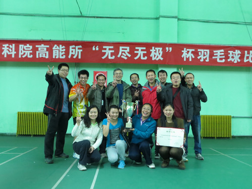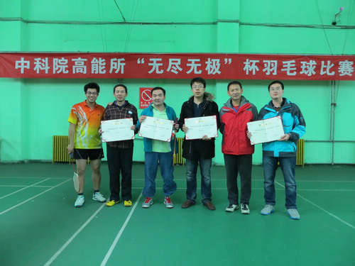 比赛结束后,组委会举行了简短的颁奖仪式,为冠军队伍颁发了奖杯及荣誉证书,并为亚、季和殿军队伍颁发了荣誉证书。晚上18:00,高能所第十届“无尽无极”杯羽毛球比赛在全体参赛队员和观众的欢呼声中顺利结束。