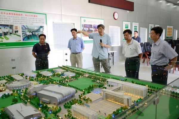 王道平、尹景辉十分关心中国散裂中子源工程的进展,抵达散裂中子源后,首先参观了工程沙盘。陈和生为来宾讲解了散裂中子源项目的概况和工程的最新进展情况,并详细介绍了散裂中子源项目对东莞市乃至整个珠三角地区经济转型的重大意义。