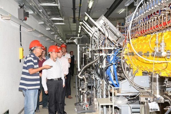 来宾在陈延伟等陪同下来到直线隧道,了解了CSNS工程的建设情况和工艺设备安装调试情况。