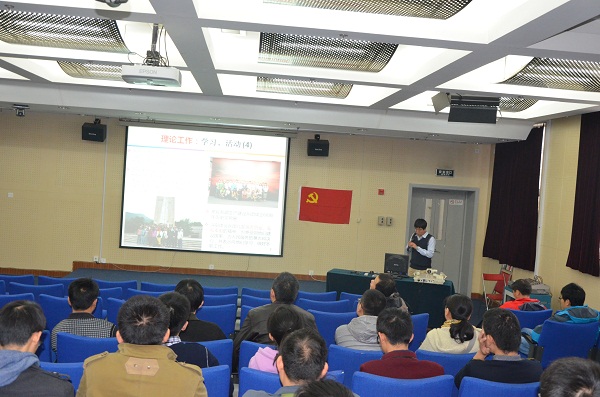 王铮代表上届总支汇报了中心党总支各项工作的进展,其中包括多年来党员和群众坚持对贫困地区马边中学困难学生进行捐助的助学活动。随后进行了总支和各支部的换届选举,推选出了新一届党总支委员和各支部委员。最后,王铮作了“三严三实”专题教育党课的报告。