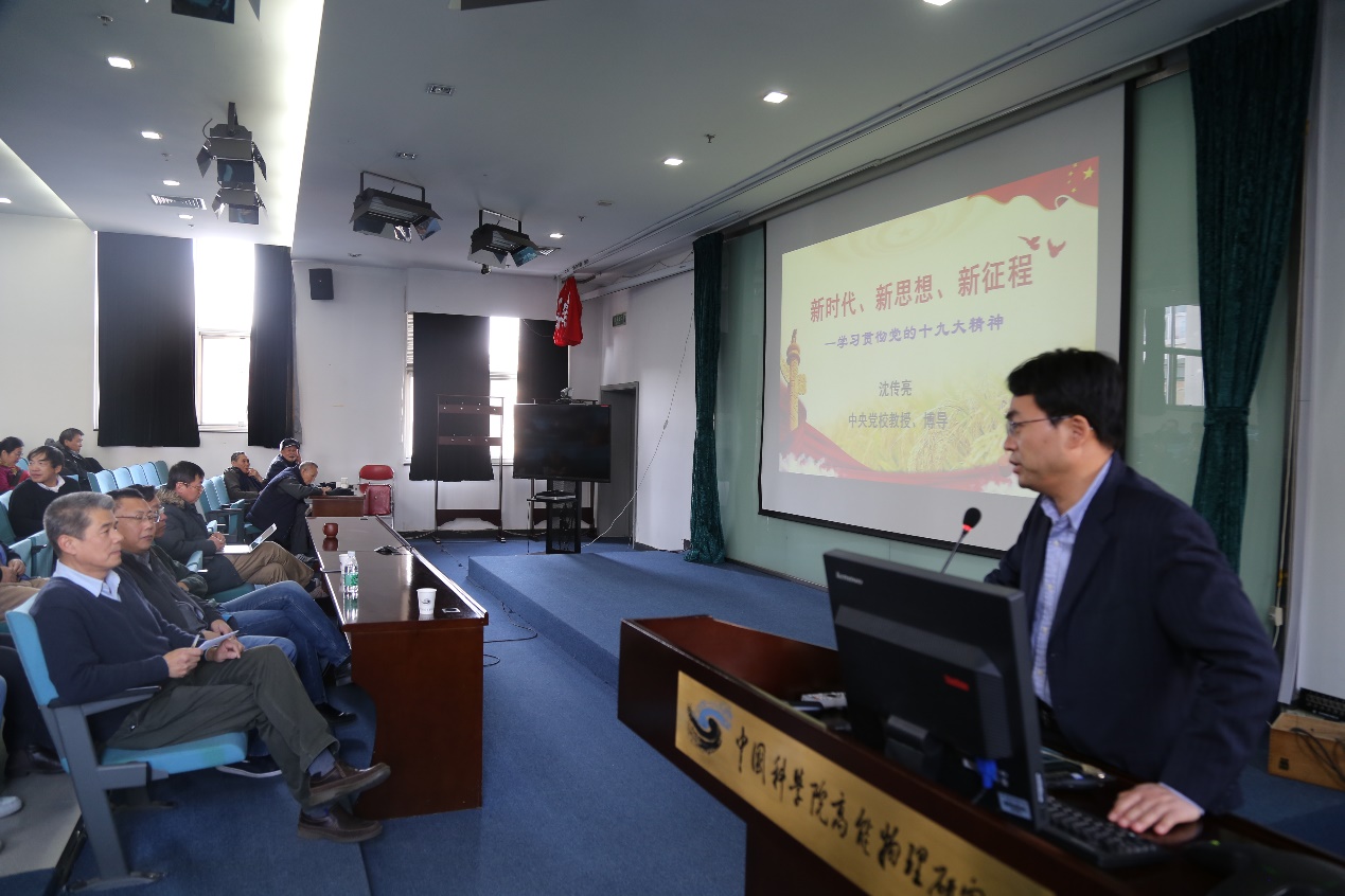 1月8日,中科院高能所党委组织举办中心组学习扩大会议。本次会议邀请中央党校党史部教授沈传亮对十九大报告精神进行了解读,党委书记潘卫民主持大会。