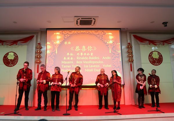本次茶话会共有9个自编自创节目:年味很浓的歌舞《新年快乐》拉开了演出序幕,幼儿园小朋友的助阵让现场充满了欢乐; “三生三世追光逐诺”,充满情怀的科研追梦人;三句半《大话慧眼》,反映了“慧眼”卫星发射成功背后科研人员的辛勤付出;国际范儿的合唱《恭喜你》,表达了外籍专家新春的祝福;知识问答和抽奖现场热闹非凡,美丽的舞蹈、动人的歌曲和搞笑的小品将节目现场的气氛推向高潮。