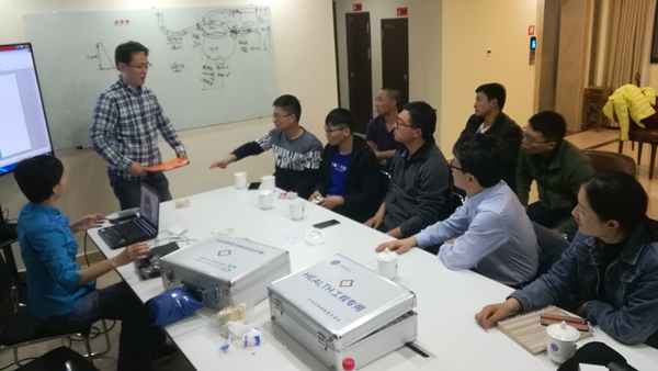 启动仪式之后,海军总院高压氧科主任医师胡慧军做了急性高原反应防治的讲座,中关村医院和海军总院的专家为工程建设人员进行了义诊,专家们对LHAASO在站的工作人员进行了药品使用、简易外伤处理的培训,并对中科健康在线咨询APP、多参数一体机操作和制氧机操作进行了讲解。各位专家们不辞辛劳,在没有及时休息的情况下,活动一直持续到晚上11点。义诊期间,中关村医院呼吸科的孙丽主任,由于说话过多,休息不充分,引发了强烈的高原反应,专家们的职业精神让人敬佩。