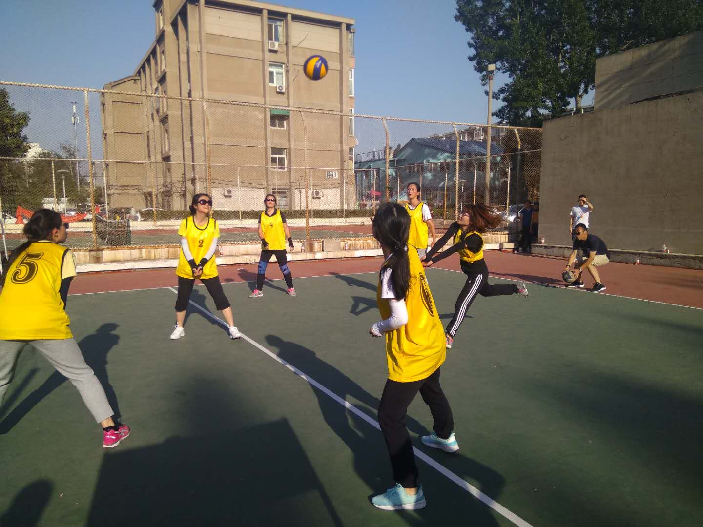 今年第一次在新修建的场地举行排球赛。今年的比赛与以往不同,因场地建好后已到炎热夏季,比赛只好改在下午下班后进行。大家都克服困难,牺牲业余时间积极参加训练和参赛。