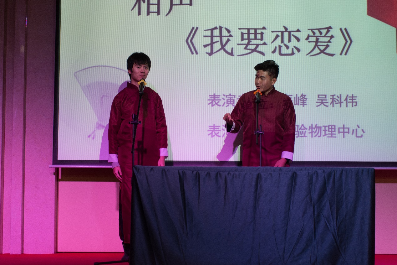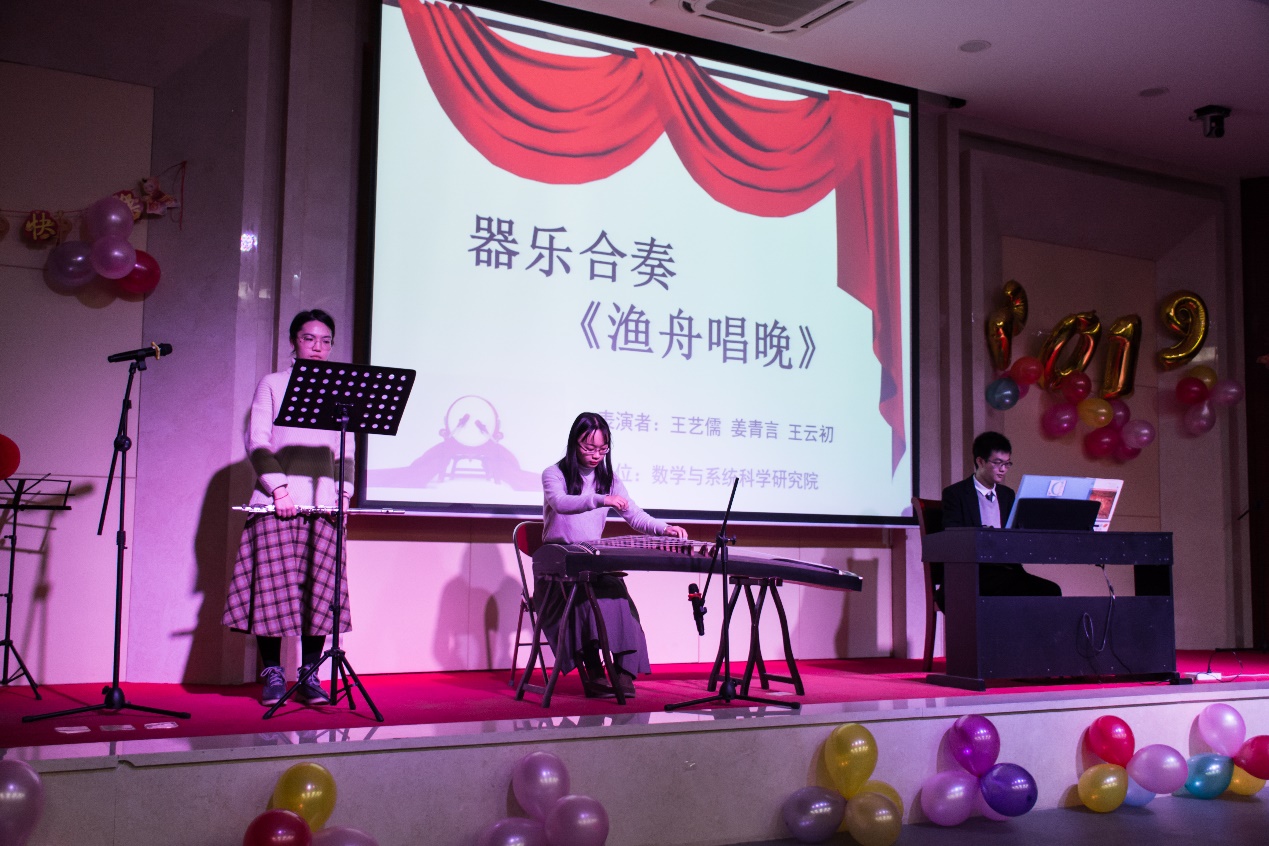 颁奖结束后,新年联欢会在一片欢乐喜庆的氛围中拉开了帷幕。各中心的同学多才多艺,各展才能,为大家带来乐器合奏、古典与现代舞蹈、相声、歌曲等精彩的节目。晚会请来了兄弟所及国科大学生助阵,精彩纷呈。晚会中穿插了小游戏和抽奖环节,惊喜和欢笑不断。