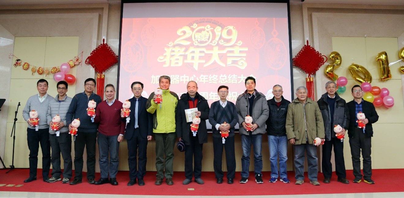 2018年12月29日上午,加速器中心全体人员欢聚高能所报告厅,参加加速器中心成立20周年暨年终总结大会。高能所党委书记潘卫民,党委副书记、副所长罗小安,副所长秦庆、陈刚、陈延伟,陈森玉院士,部分加速器中心往届主任、副主任、支部书记出席。会议由加速器中心副主任曹建社主持。会议议程包括工作总结报告、祝福视频及节目联欢三部分。