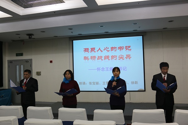 2018114日,高能所原党委书记、研究员王焕玉同志病逝于学术报告现场,为缅怀与铭记老书记,报告会上,张宝丽、王景耀、刘建华、徐跃等四位离退休老同志带来原创诗朗诵《凝聚人心的书记科研战线的尖兵——怀念王焕玉同志》,他们用诗歌再现了王焕玉同志勤勉、奋斗、奉献的一生,使与会人员深受教育与感动。