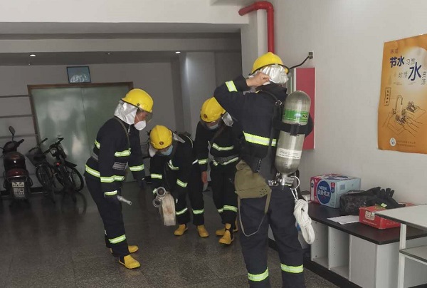 拉练自上午10:00展开,本次拉练假定场景为:物资仓库木材堆放场突发火情,可能造成公共财产较大损失,情况十分危急。现场突发火情后,人员立即拨打5959向所安全中控值班室报告,同时按下了消防手动报警按钮。行政处安保办接到火情报警后,迅速将有关情况向所应急领导小组报告,并依据应急预案,指令微型消防站紧急出动,赶赴现场展开初期灭火处置。拉练结束后,现场拉演人员就本次拉练情况、预案完善和应急处置程序等进行了总结交流。