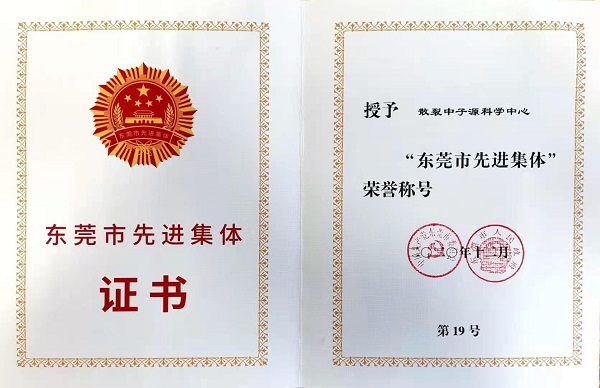12月25日,2020年广东省东莞市劳动模范先进工作者和先进集体表彰大会在东莞召开,中科院高能所东莞研究部副主任王生获“东莞市劳动模范”称号,散裂中子源科学中心获“东莞市先进集体”称号。