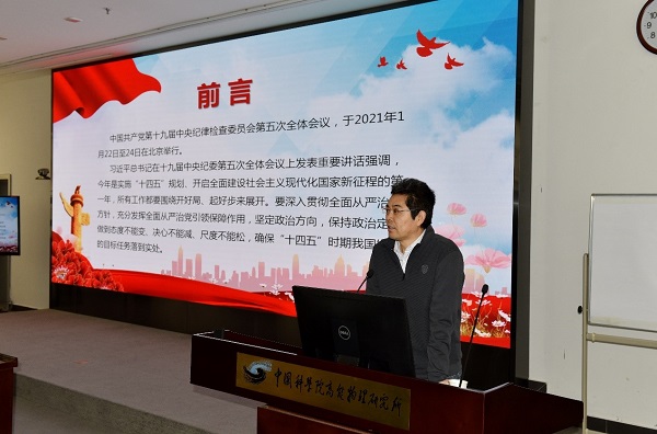 最后,加速器党总支书记岳军会对侯建国院长在中国科学院2021年度工作会议上的报告做全面导读。报告总结了全院过去一年主要工作进展,分析了当前发展的新形势新要求,提出了强化国家战略科技力量使命担当、加快全面实现“四个率先”的目标要求,部署了“十四五”时期和“率先行动”计划第二阶段发展战略与今年重点工作。
