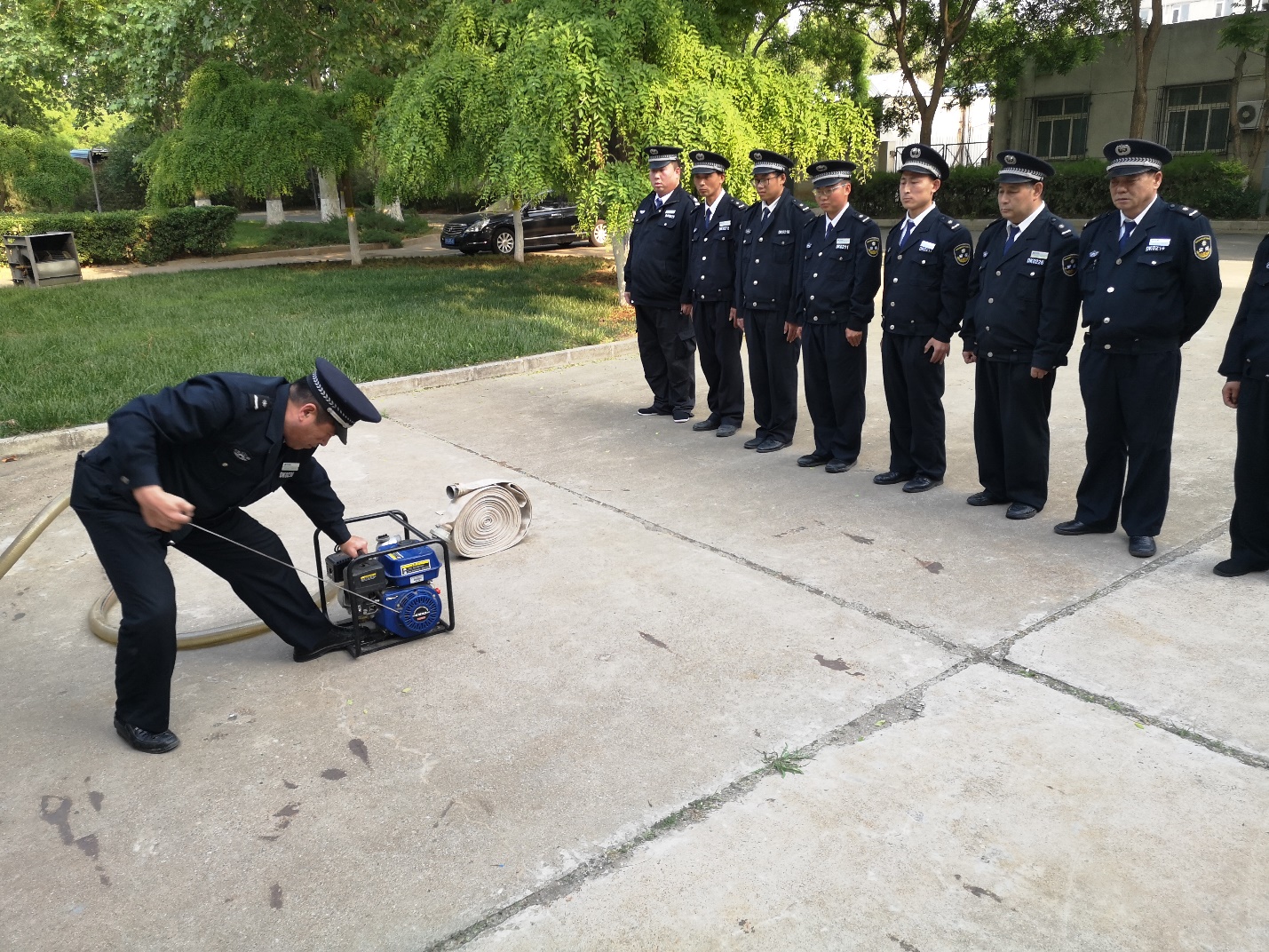 组织防汛消防演练,提升抢险救灾能力。为提升防汛应急能力,行政处在北京正负电子对撞机国家重点实验室内开展防汛应急处置实操演练,模拟同步辐射东厅卷帘门处发生汛情,防汛应急小队赶往现场处置,一组负责码放沙袋阻止向室内进水,二组负责周围下水道疏通并设警示标牌,三组负责抢险水泵抽水将室内积水清除,清除积水后三组留守观察防止再次进水,二组巡视对撞区其他重点部位,一组负责巡视办公区重点部位,直至汛情解除。此次演练检验了我所应对自然灾害的自我防护能力,增强了防灾减灾意识,进一步筑牢了研究所园区安全防线。此外,行政处在图书馆一层开展微型消防站应急处置培训及实操演练,模拟图书馆门一层楼梯下有垃圾着火,接到火情报告后微消站6名队员迅速赶到现场,第一时间拉上警戒,疏散围观人员,有序从楼顶开始往下疏散人员到楼下安全区域,灭火组负责甩水带和灭火,经过微消队员的奋力扑救,萌芽火被扑灭,通过此次演练,队员们熟悉了应急流程,对火灾的警惕性提高,在应急中对消防器材使用方法有了新的认识和巩固。