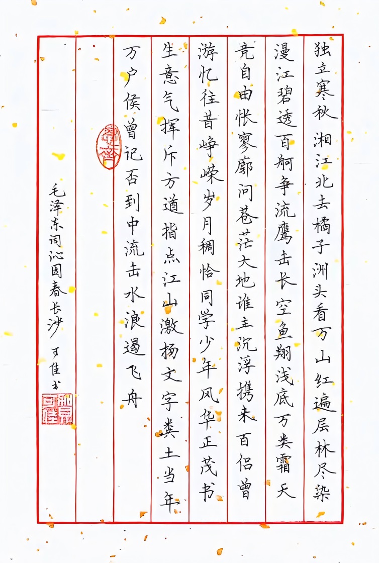 五、硬笔书法:《沁园春长沙》