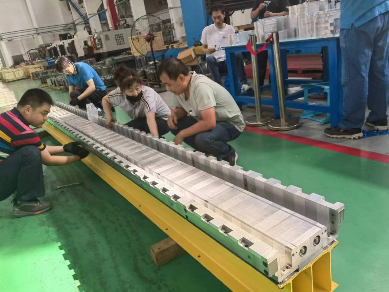 通过与项目课题组的充分沟通,高能锐新公司多次召开技术讨论会并开展联合技术攻关,在相关人员的通力配合下,任务团队相继克服了样机结构刚性差、叠装精度高、重复定位精度差、吊装形变超差等问题,开创性地探索出一套全新的设计方案和工艺路线,研制出了一系列适配工装,充分满足了磁铁的设计指标要求。在疫情反复的背景下,最大程度降低了疫情对项目进度的影响,按时保质的完成了样机的研制工作。