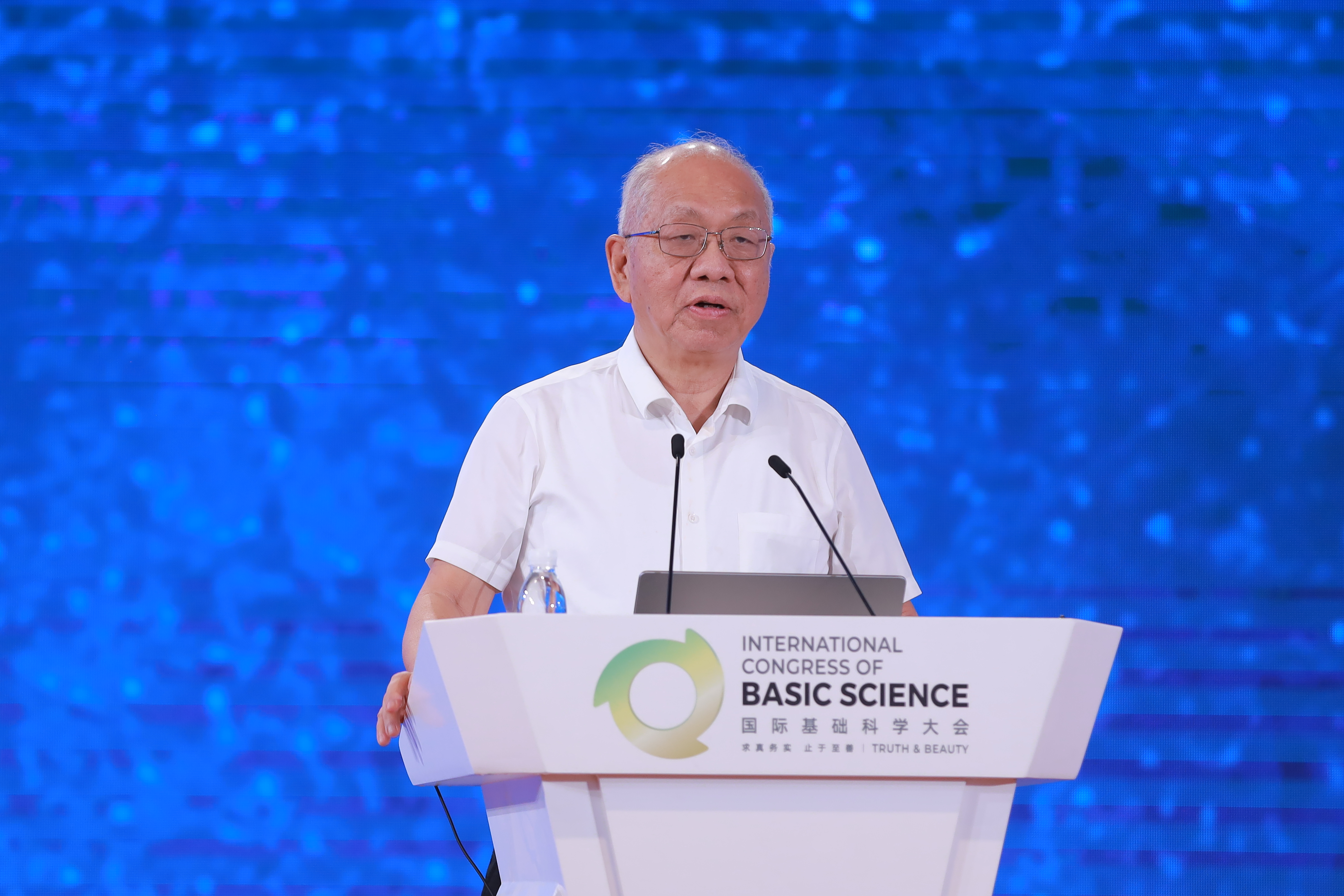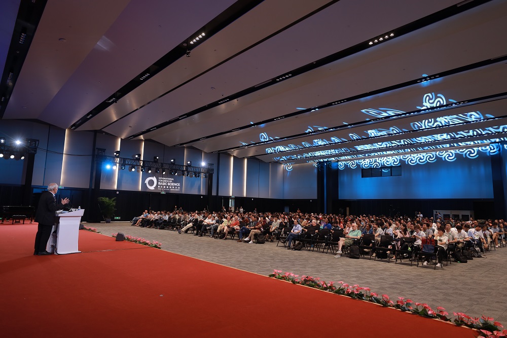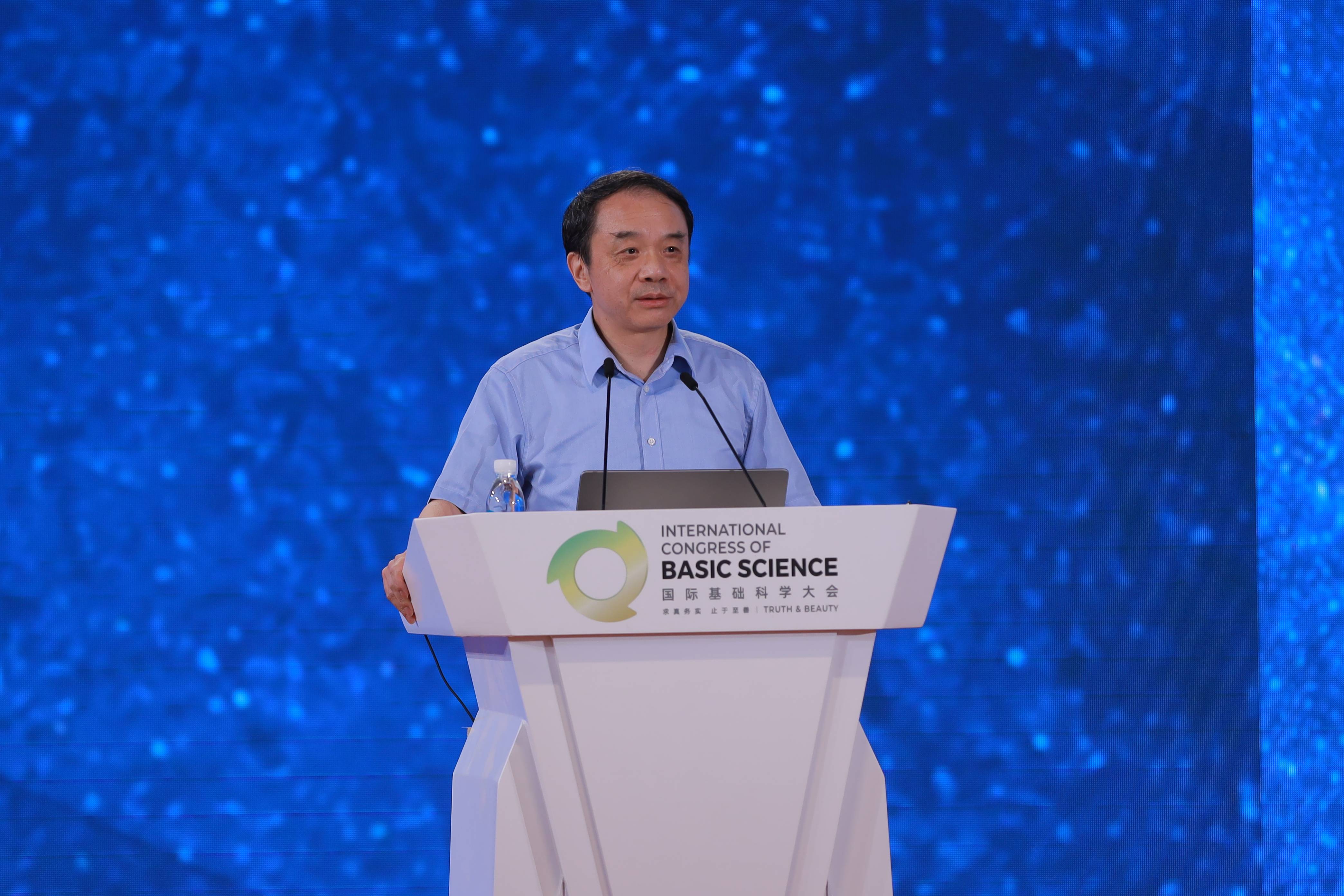 丘成桐先生在致辞中强调了基础科学大会的主要目的是为数学家、物理学家和计算机科学家提供充分交流的平台,聚力推动基础科学的发展。丘先生回顾到,在基础科学发展的历史过程中,数学与理论物理之间的关联密不可分、相互影响与促进。他指出,理论物理学家的直觉对数学家解决难题具有很强的启发性甚至可能成为指导性原则,例如规范场理论与微分几何。虽然数学家创造了研究规范场理论所需的数学工具,但并没有意识到其物理上的重要性。最后,丘先生希望在不久的将来能有许多重大科学问题在北京被解决,期待理论物理学家和数学家的重要想法最终被实验物理学家所证实。