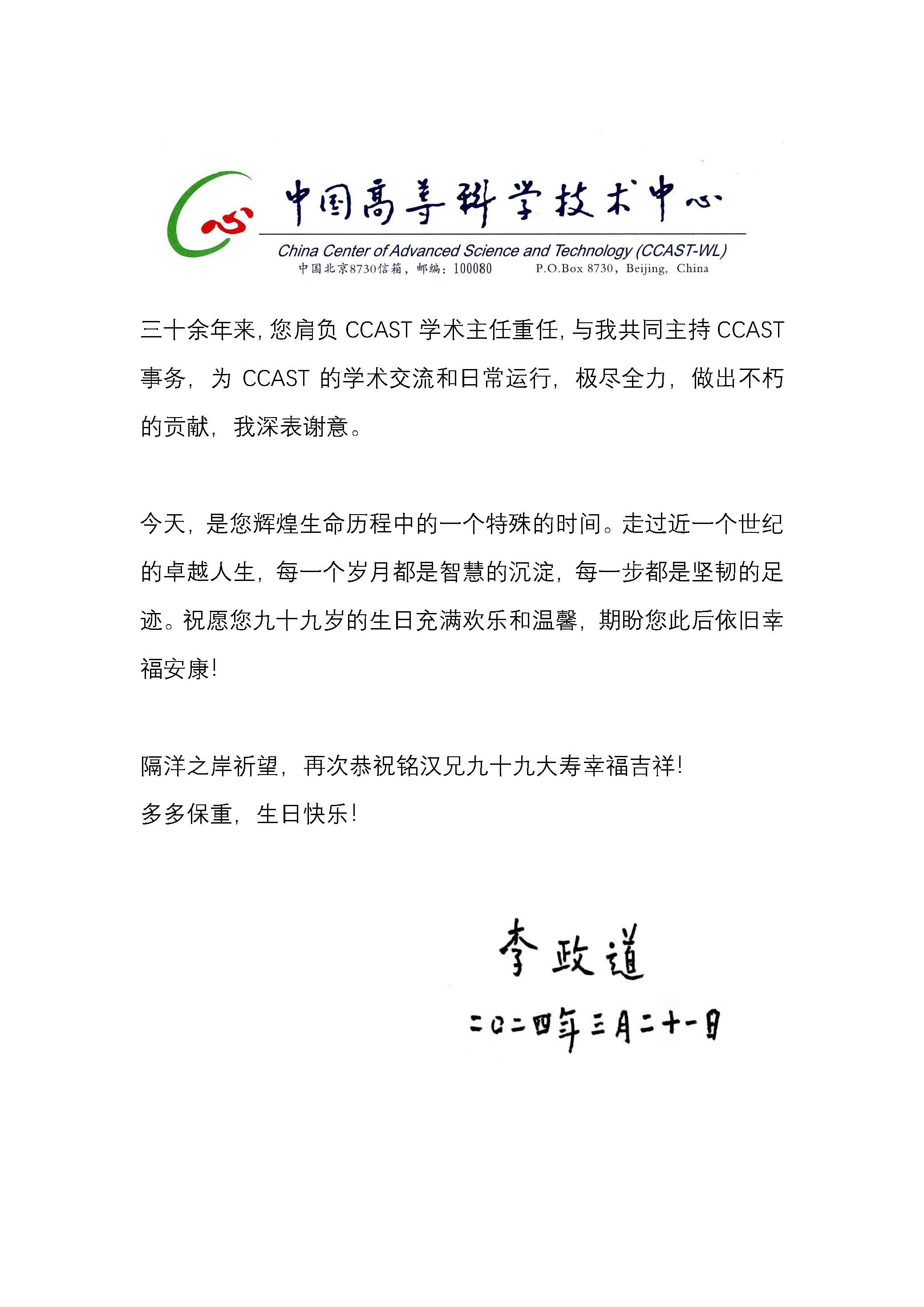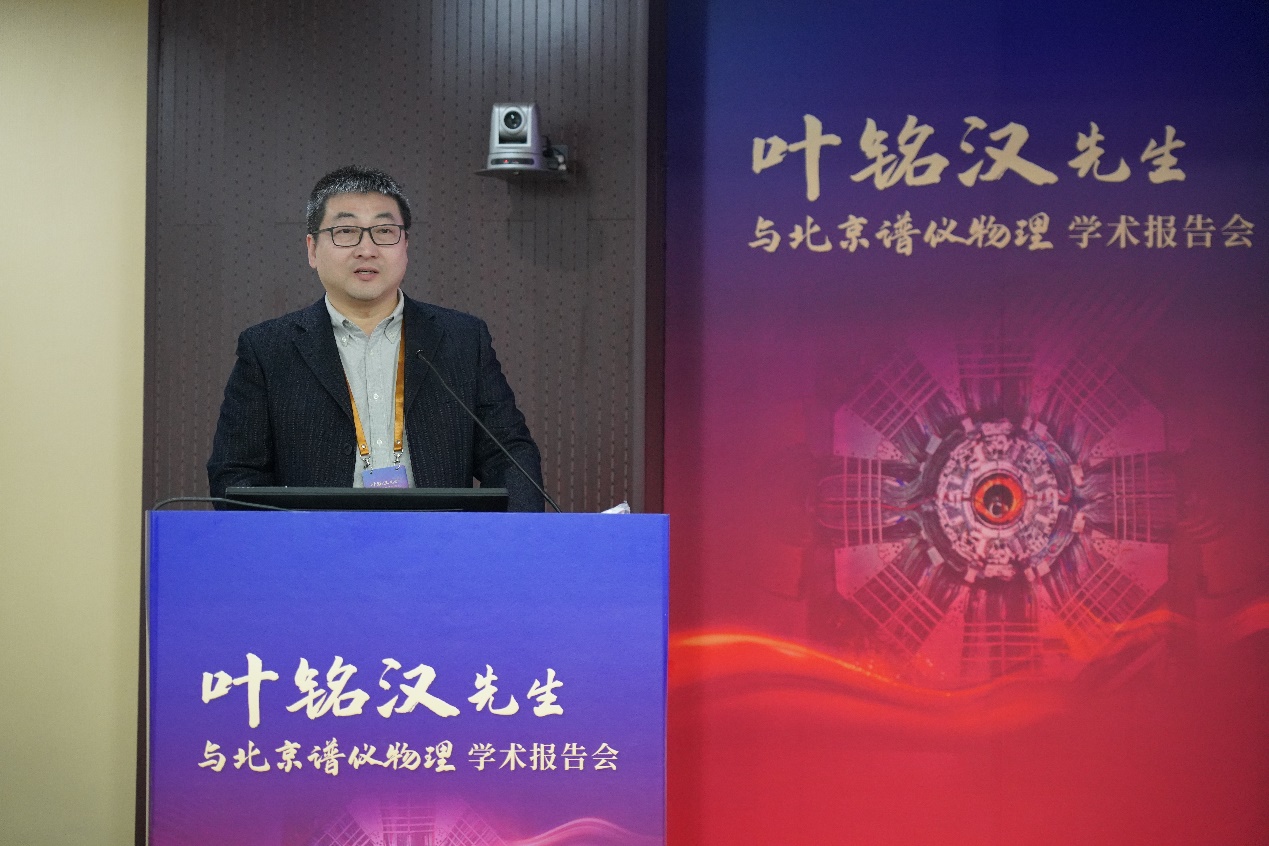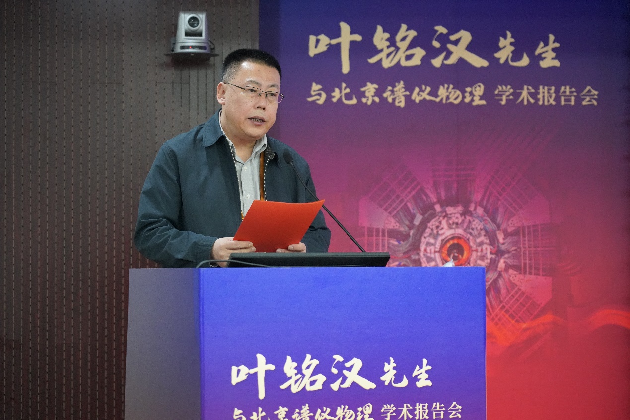 高能所所长王贻芳院士在开幕式中致辞。王贻芳向叶先生转达了中国科学院侯建国院长对叶先生的祝愿并宣读了诺贝尔奖获得者、叶先生的同窗挚友李政道先生的贺信。王贻芳在致辞中指出,我国的高能物理研究在世界高科技领域占有了一席之地,一大批重要科研成果不断涌现,这些成绩离不开叶先生的卓越贡献。他表示回顾叶先生的百年人生历程,“锲而不舍、做出成绩”的理想与信仰贯穿始终。叶先生是德高望重的长者、潜心研究的科学家,也是言传身教的教育家、掌控大局的管理者,他为了培养高能物理人才孜孜不倦,无私奉献,举办这次会议不仅为了表达对他的崇敬之情,更是为了弘扬叶先生崇高的思想品德和科学精神,推动高能所加快抢占科技制高点,为我国高能物理事业创新发展、实现高水平科技自立自强再立新功。