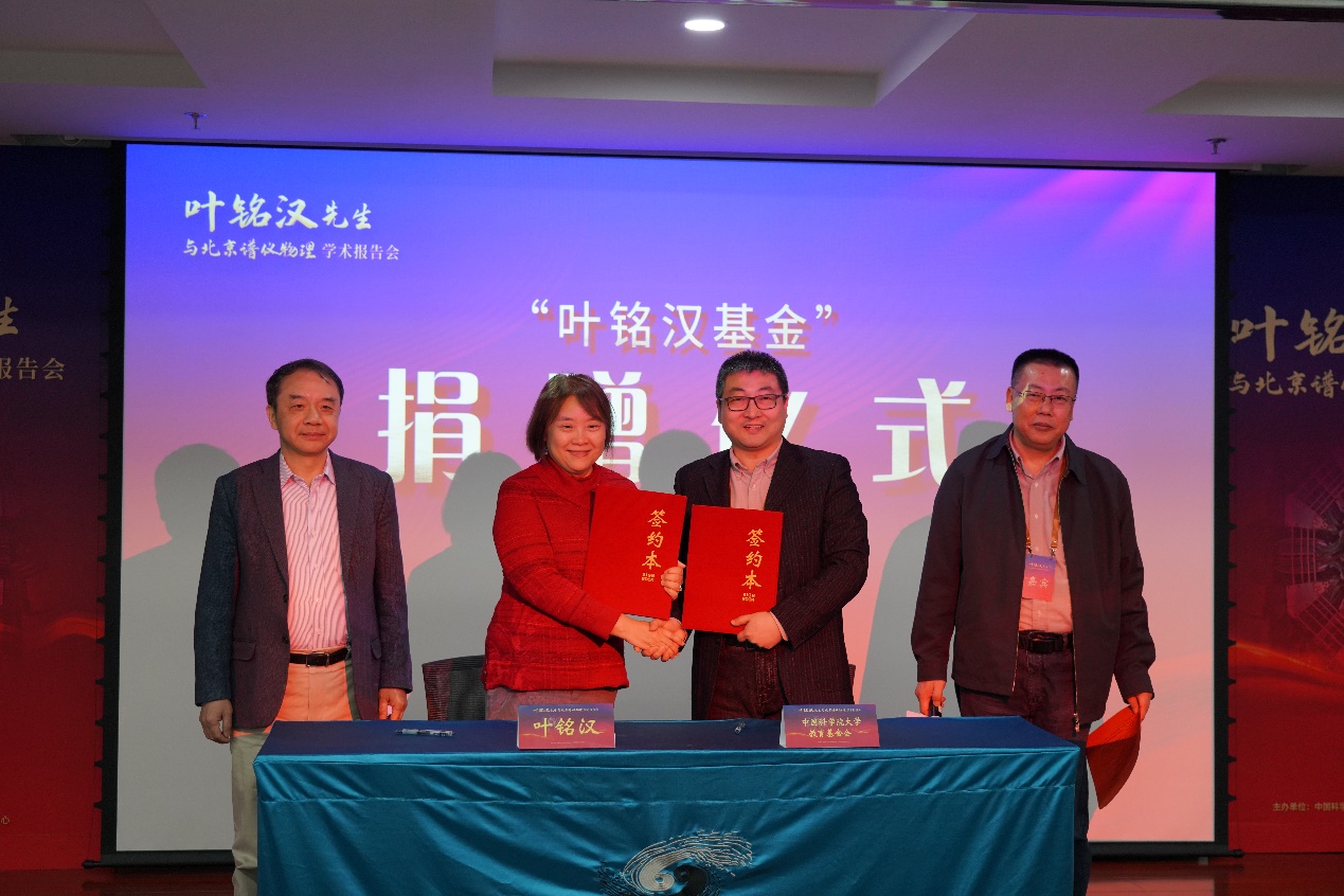 魏龙在会议中宣布成立“叶铭汉基金”,他介绍到,叶铭汉先生始终关心我国高能物理事业和人才培养,一生潜心培养学生,叶先生决定从他的积蓄中向中国科学院大学教育基金会捐赠300万元,用于奖励高能所的青年科研人员从事高能物理研究。