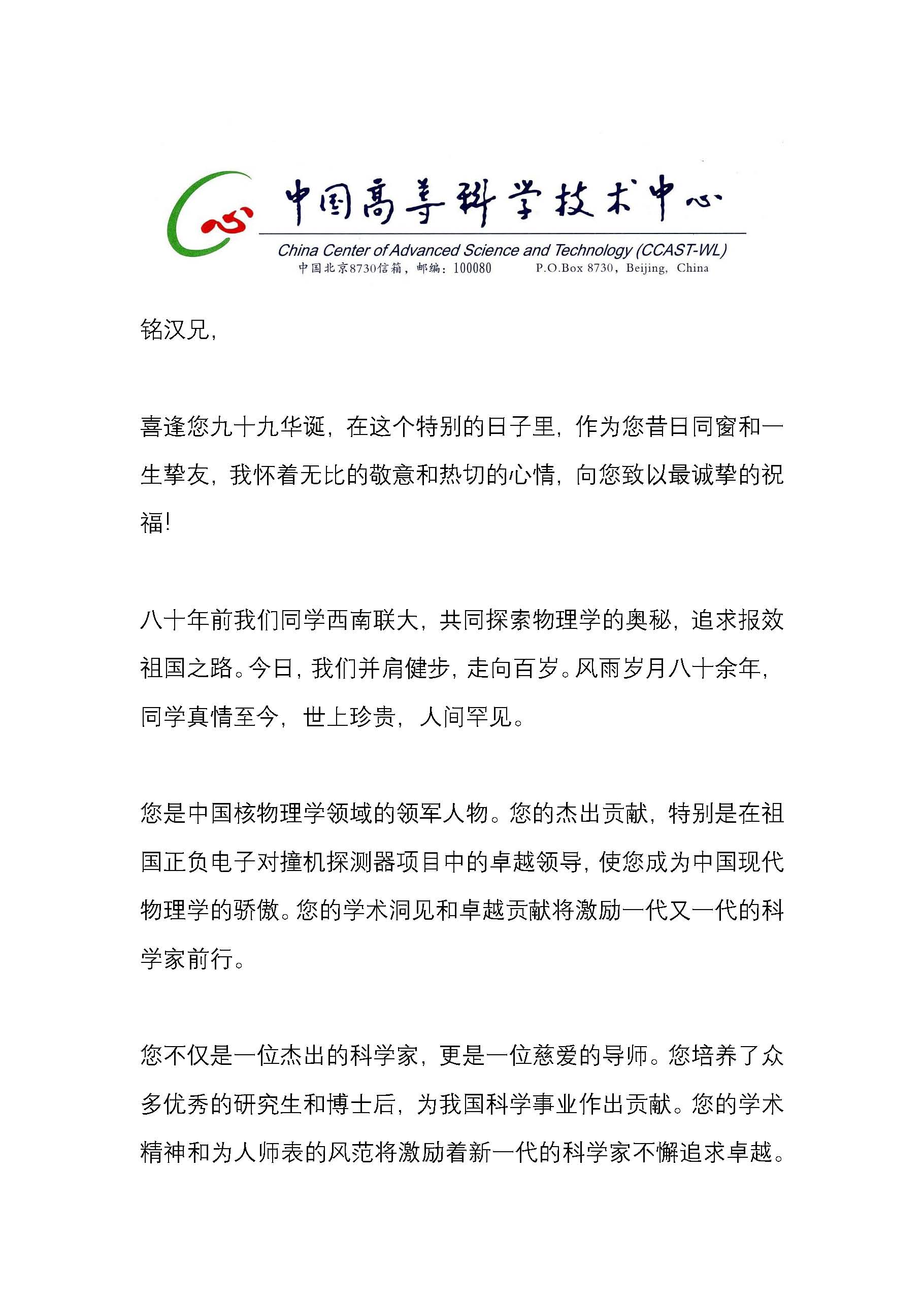 叶如茵代表父亲叶铭汉发言,她说父亲捐赠的原因很简单,中国的高能物理是他的终身事业,为此他付出了毕生心血,父亲常说,中国高能物理今后的发展将有赖于一代又一代的青年学者不断努力;为此,他决定拿出有限的积蓄设立基金,奖励高能所的青年科学家。