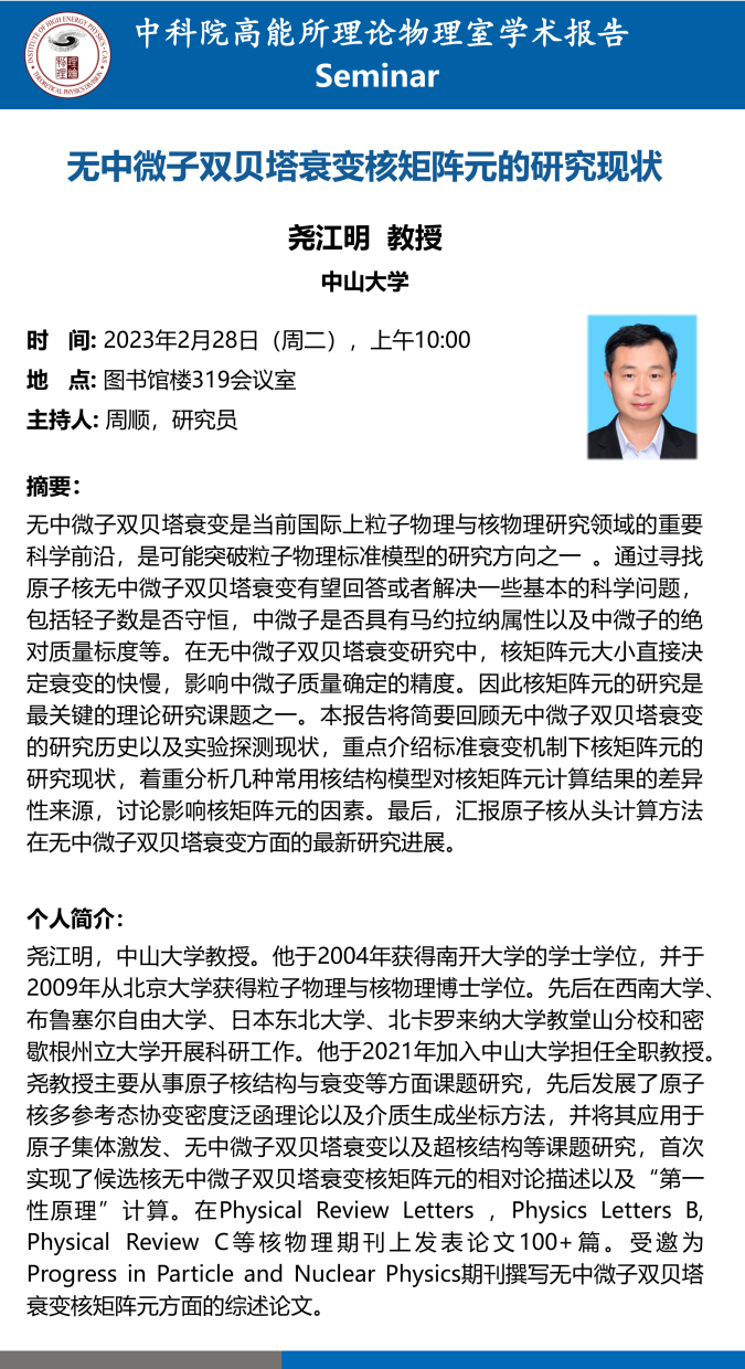 【02.28】Seminar:无中微子双贝塔衰变核矩阵元的研究现状