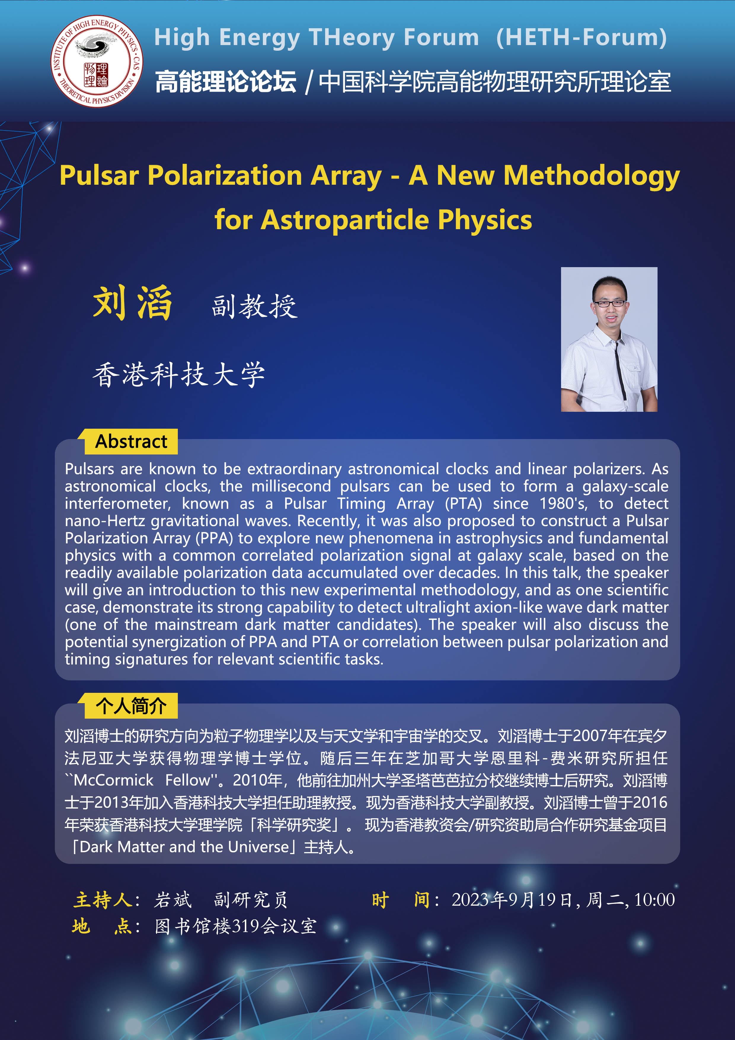 【09.19】高能理论论坛第53期--Pulsar Polarization Array - A New Methodology for Astroparticle Physics