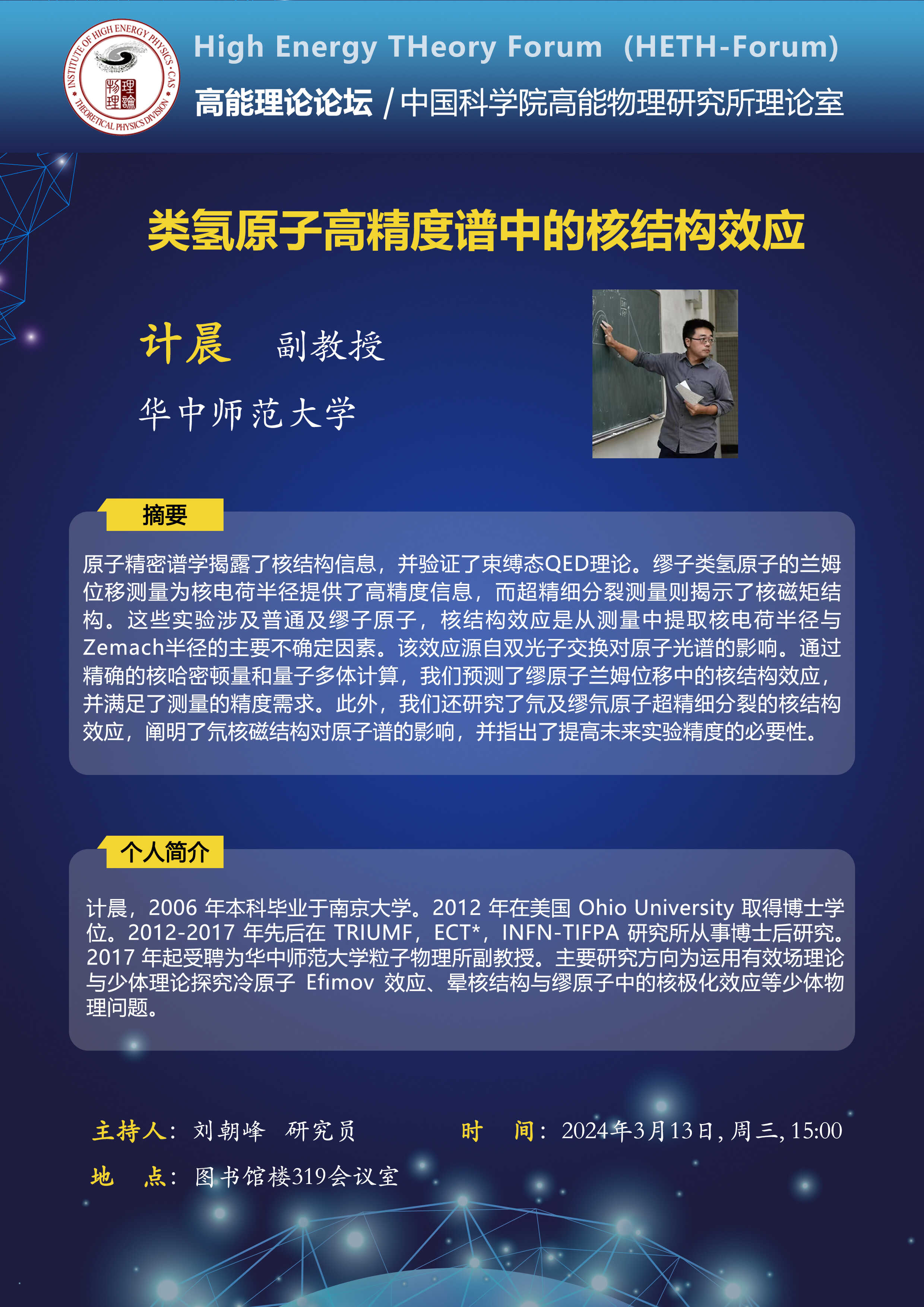 【03.13】高能理论论坛第69期--类氢原子高精度谱中的核结构效应