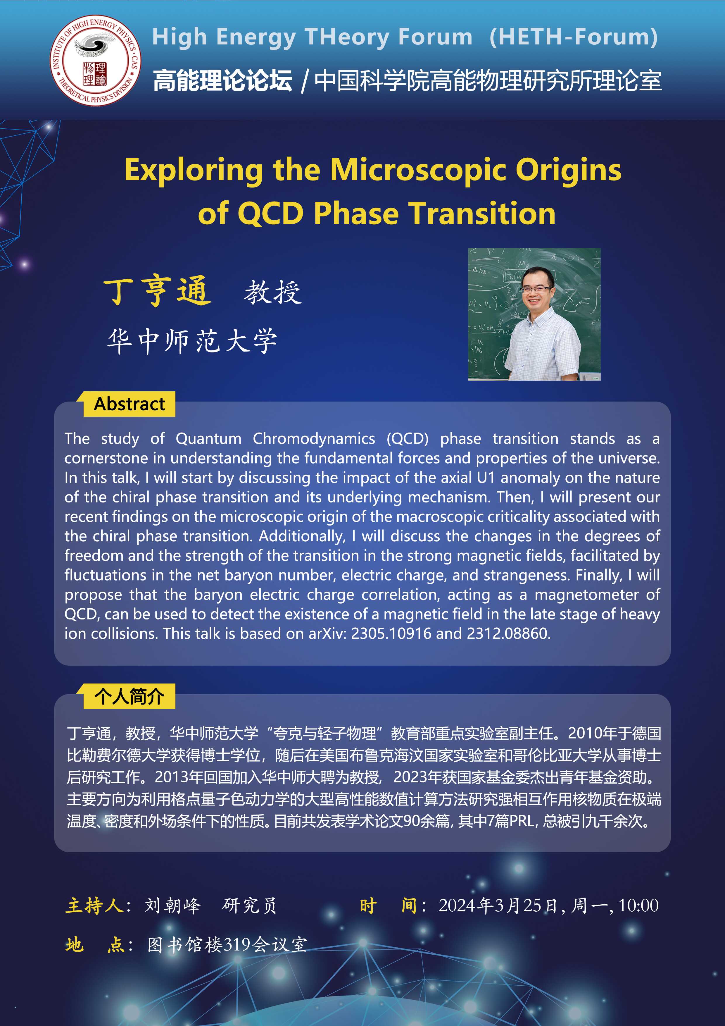 【03.25】高能理论论坛第70期--Exploring the Microscopic Origins of QCD Phase Transition