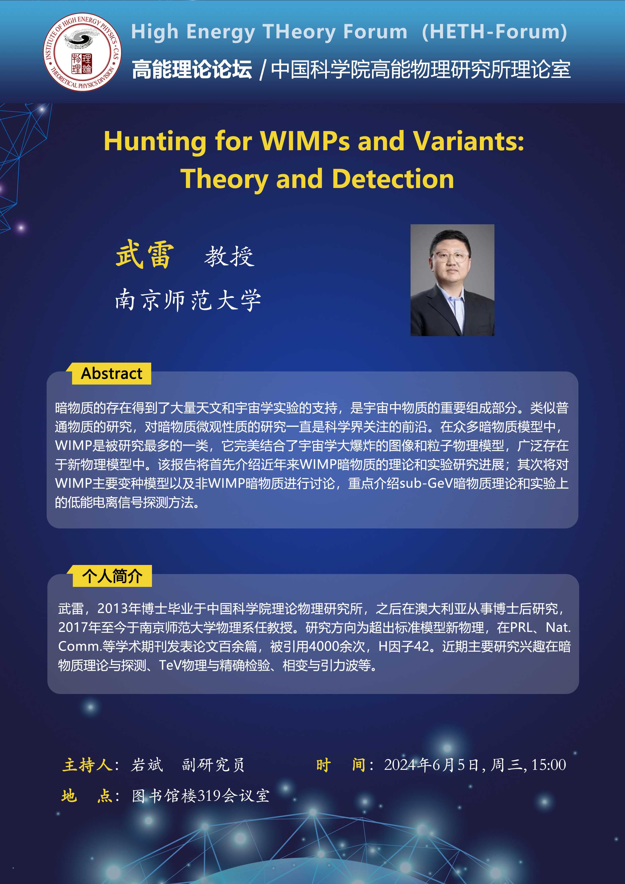 【06.05】高能理论论坛第76期--Hunting for WIMPs and Variants: Theory and Detection