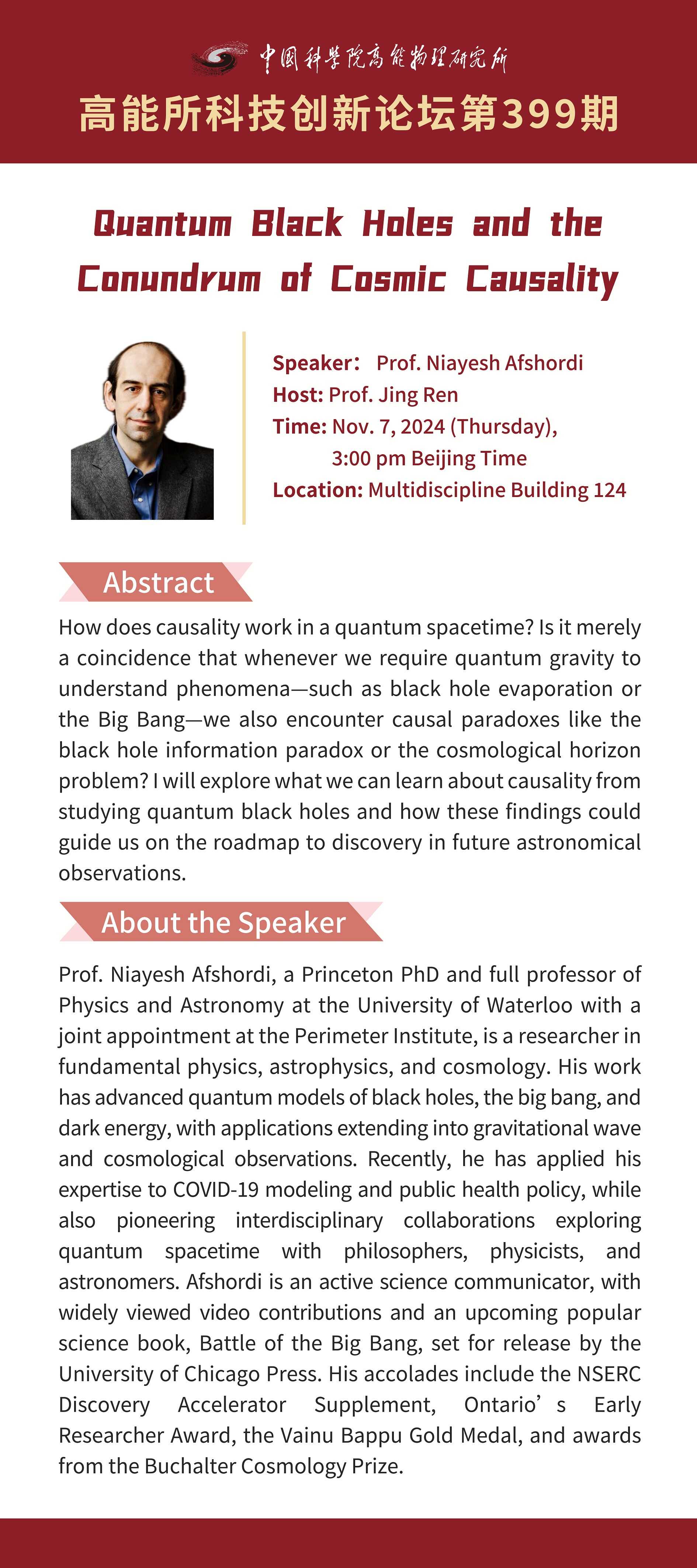 【11.07】高能所科技创新论坛(399)Quantum Black Holes and the Conundrum of Cosmic Causality