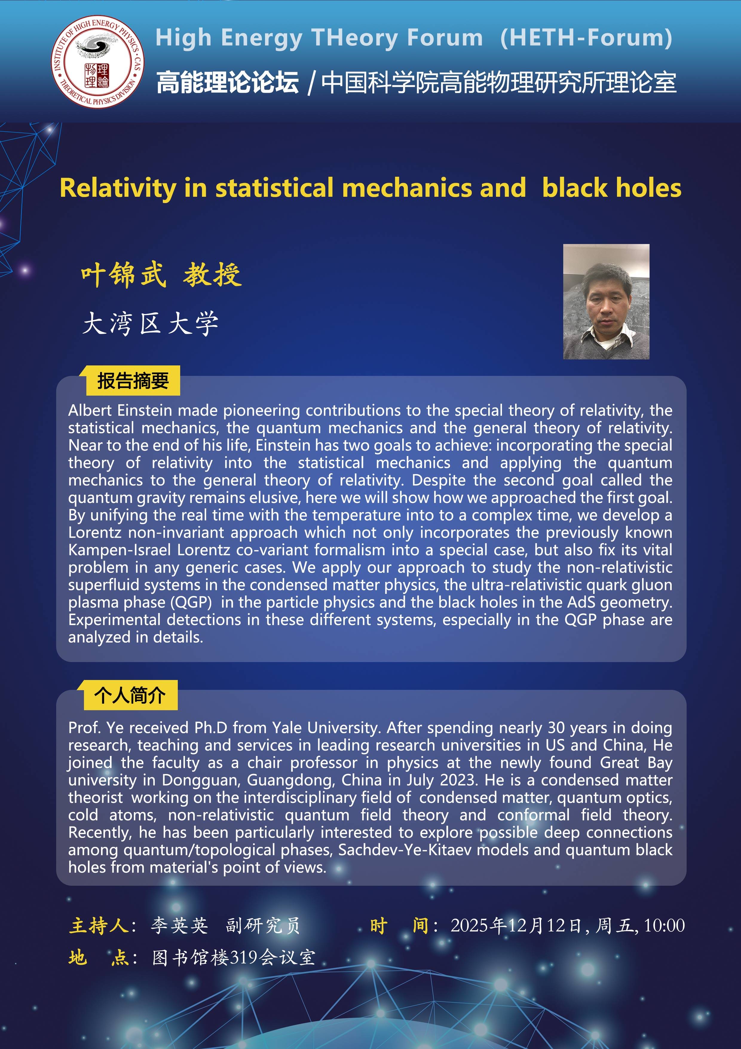 【12.12】高能理论论坛第116期--Relativity in statistical mechanics and black holes