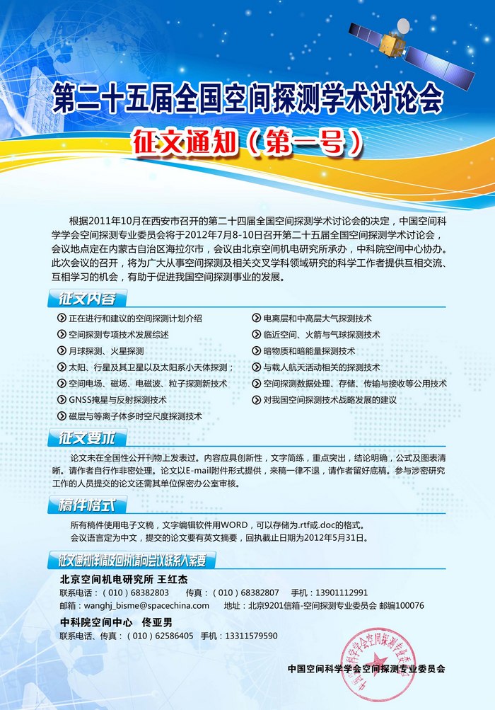 第二十五届全国空探测学术讨论会征文通知