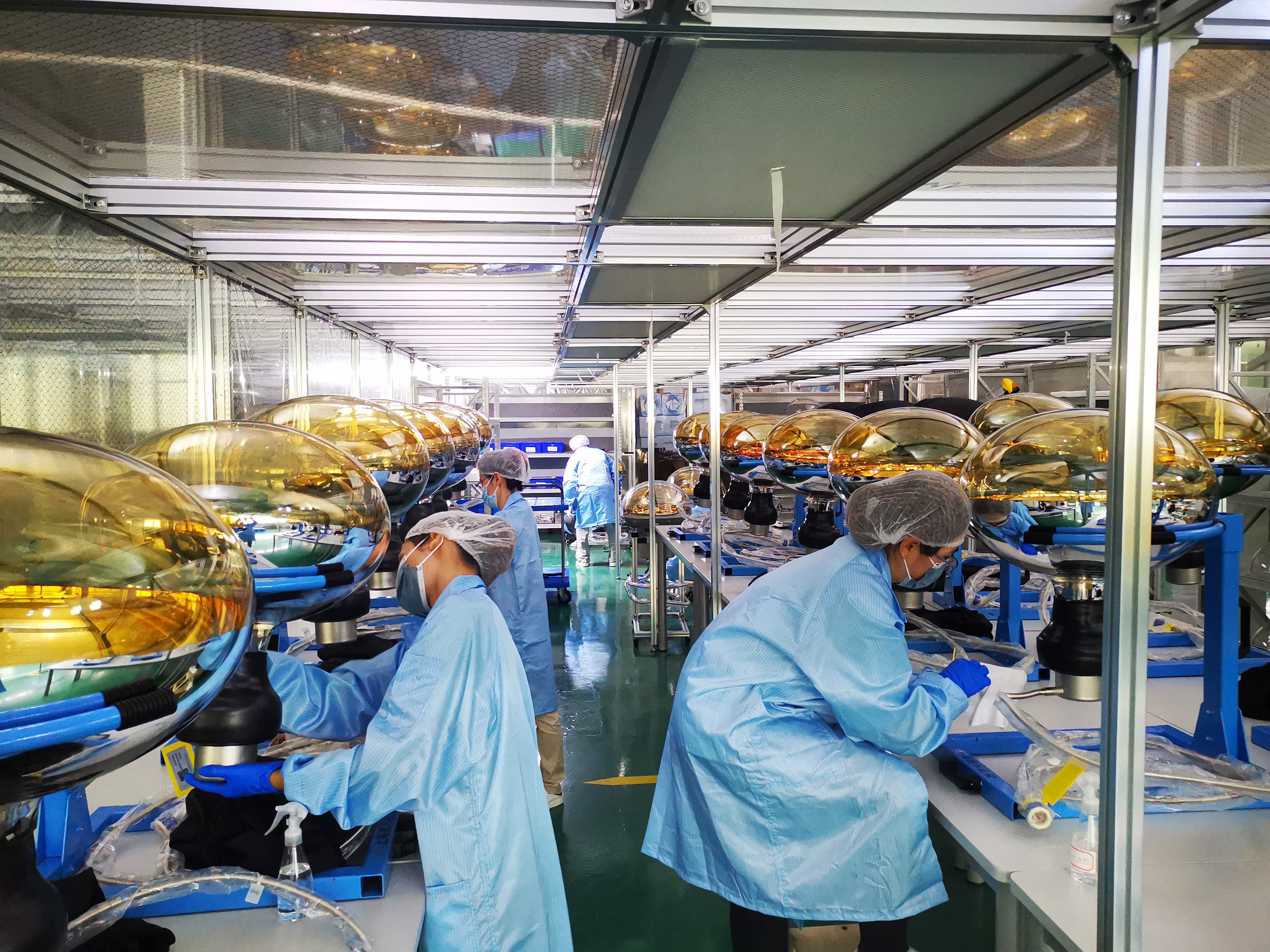 PMT测试与防护系统负责人秦中华及其团队此前已完成了全部PMT的测试和防水封装,积累了丰富的实际操作经验,未来,他们还将严格按照标准化操作流程,保质保量完成全部两万支20英寸PMT的防护罩装配工作。