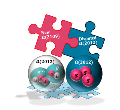2018年,Belle合作组在实验上观测到一个新粒子的实验证据,Ω(2012)-。一些理论家根据夸克模型的计算认为Ω(2012)-可能是重子Ω-的第一轨道激发态的候选者。然而,还有一些理论家认为Ω(2012)-具有强子分子态的奇特结构。截至目前,Ω(2012)-的性质仍然存在很大争议。
