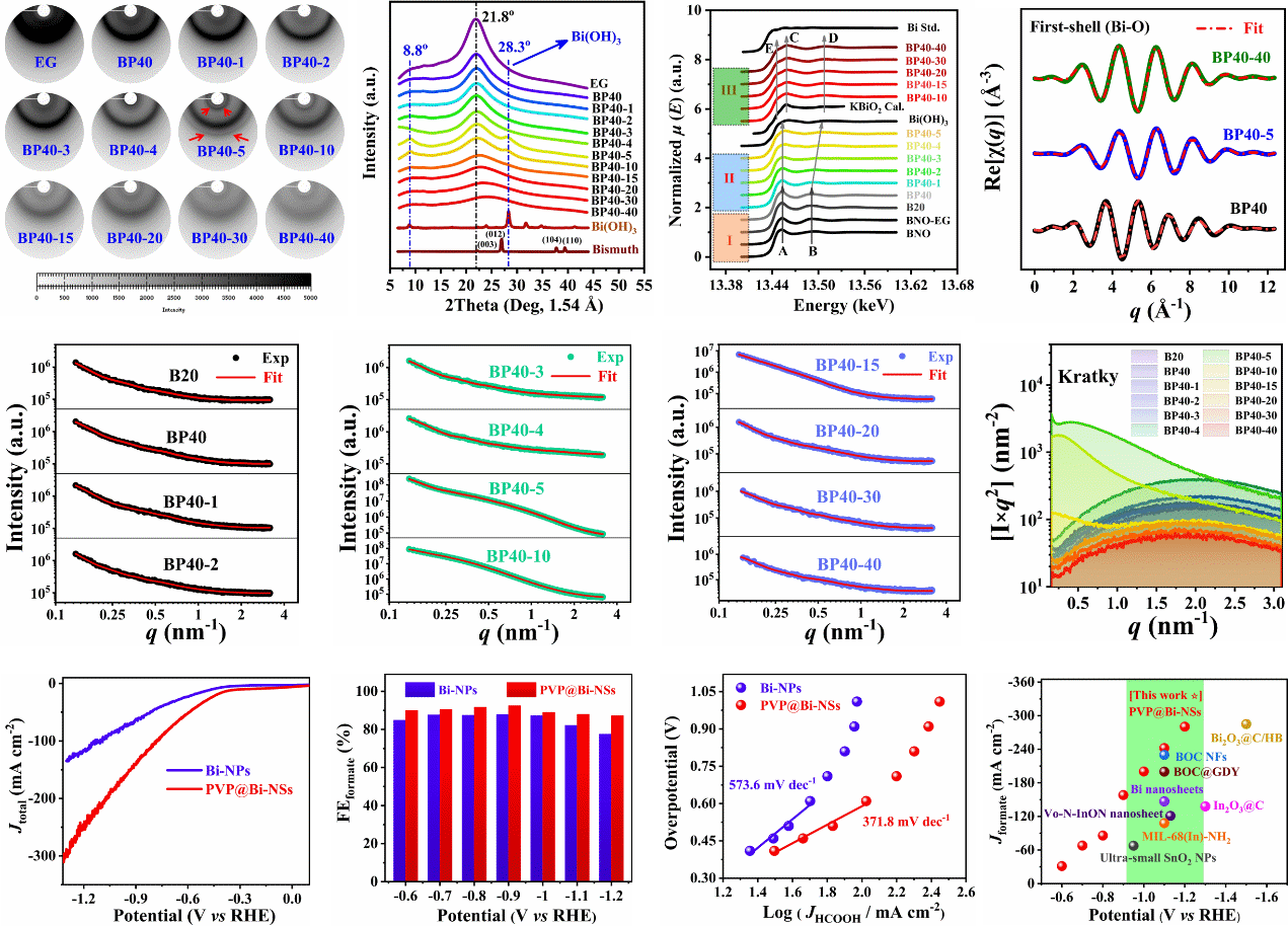同步辐射原位SAXS、WAXS、XRD和XAFS技术助力PVP@Bi-NSs催化剂的可控合成和催化机制研究 |