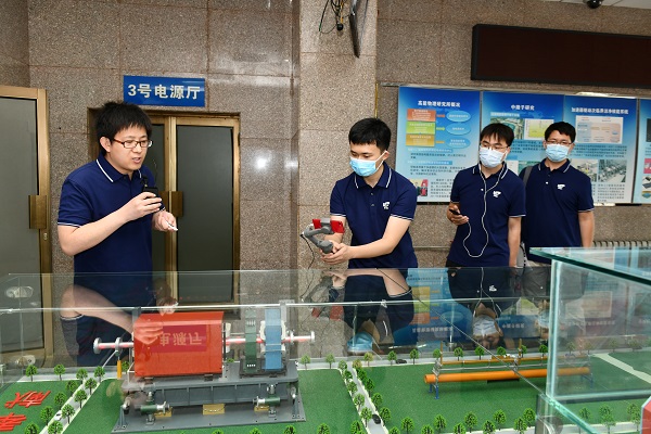 在北京正负电子对撞机的“云参观”环节,讲解员通过对沙盘模型的演示,向观众展现了对撞机的全貌。之后,画面切换到对撞机的“大脑”中央控制室、对撞机的“眼睛”北京谱仪控制室以及同步辐射大厅,科研人员全方位解读了科学家如何操作对撞机、并利用正负电子对撞数据进行科学研究,以及如何利用对撞机的“副产品”同步辐射光进行多学科实验研究。